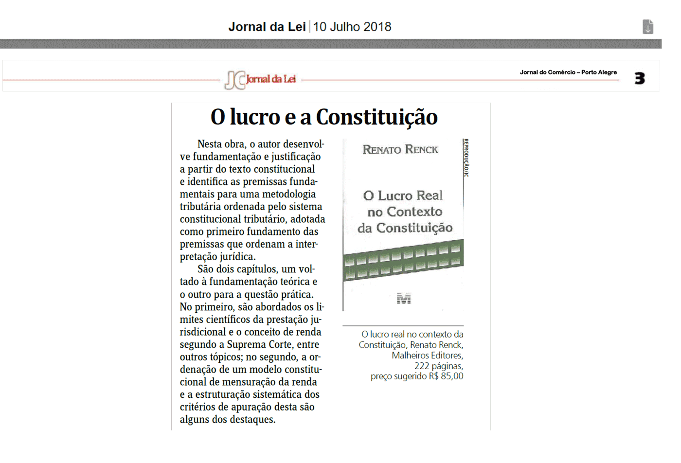 Leia a notícia publicada no Jornal do Comércio, no dia 10 de Julho de 2018, referente ao livro de autoria do sócio Renato Romeu Renck.